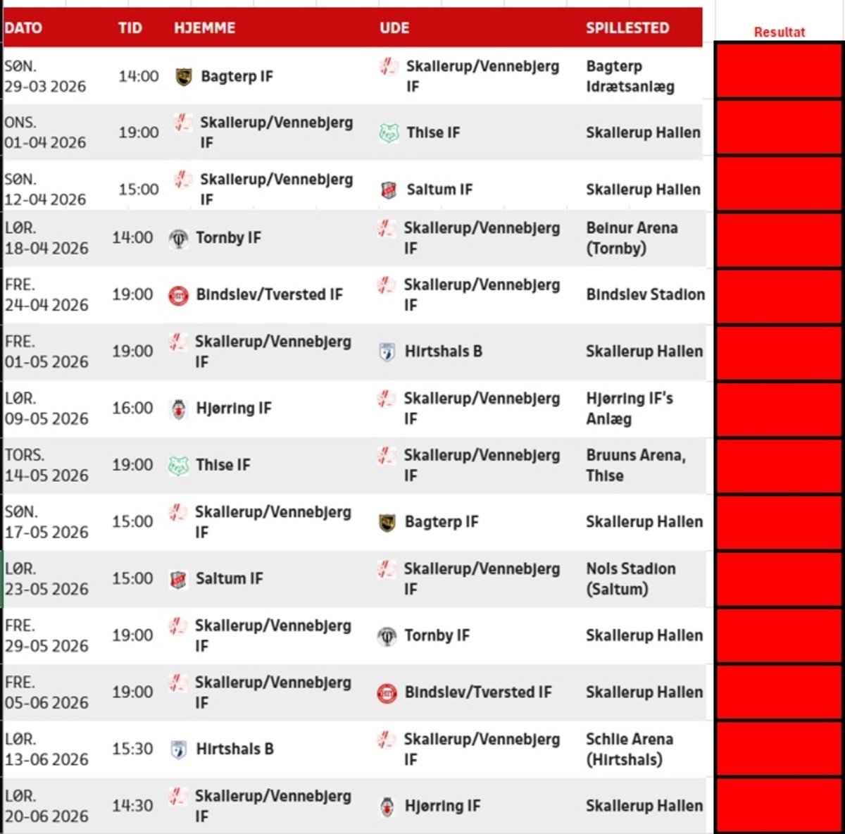 Følg med her på siden, så du ikke går glip af den næste træning, eller kampdag.